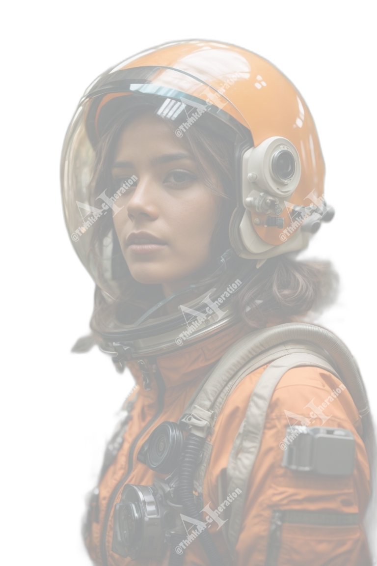 waist-up ‘Female Astronaut in a Jungle’ depicts a futuristic scenario where a female astronaut, clad in a space suit, explores a lush and vibrant jungle on an alien planet. This captivating blend of science fiction and nature evokes a sense of wonder and adventure.